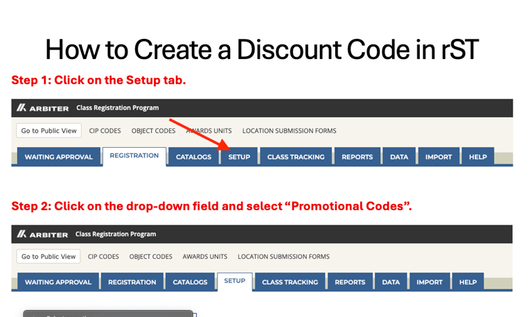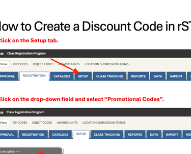 This job aid was designed to support administrative staff in accurately creating and assigning promotional discount codes within the Registration System Tool (rST). Users had frequently encountered pricing issues due to skipped or misordered steps.