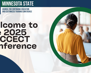 This welcome slide was created for the 2025 MnCCECT Conference to prompt discussion among attendees around workforce trends, real-world skill development, and emerging topics like AI literacy and digital transformation. Designed for visual clarity and audience engagement, it served as both a conference opener and a conversation starter—highlighting my ability to craft instructional media that informs, aligns, and activates dialogue.